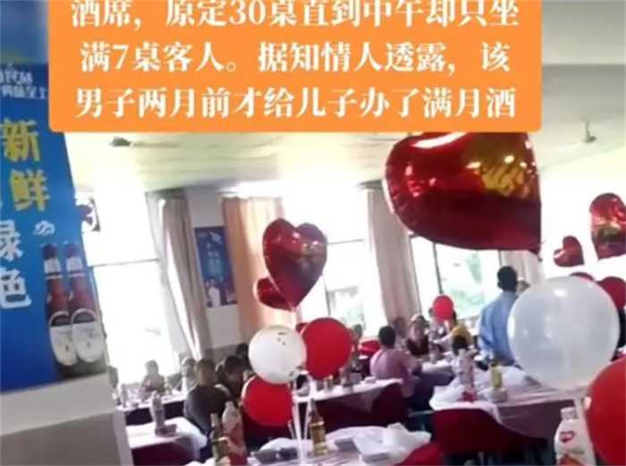 重庆一个男子在前段时间刚刚给自己的儿子办了一个满月酒,当时来参加的人还是挺多的,可是没有过多长时间,他又想着给自己的儿子办了百日酒,当时他就在饭店里面订了30桌酒席,他觉得自己邀请的朋友们都会到来,结果到了中午要开席的时候,来的人也只是做了基础而已,基本上都是自己的亲戚,哪怕是来的人也都是满脸的不开心。很显然,对于男子这样收礼的行为很不满意。