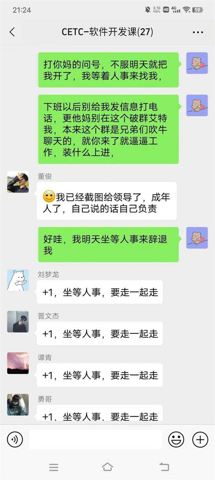 近日在我国的体制当中发生了一件十分另打工人激动的事情,这件事情的起因是因为中国电科成都区软件开发事业部的一名员工,由于自己的领导在清明节这一天给自己安排了许多的加班事情,让他感觉到十分的愤怒,同时将自己过去一段时间加班的所有怨气全部给爆发出来了。这件事情同时引起了同事们的集体共鸣,纷纷要求全部要进行辞职,同时这位员工也是十分的苦恼,声称自己同事们在这一个月从8:00开始上班一直到晚上11点才开始下班,该公司已经完全的违反了劳动法,而公司的领导却在家里躺着玩儿。