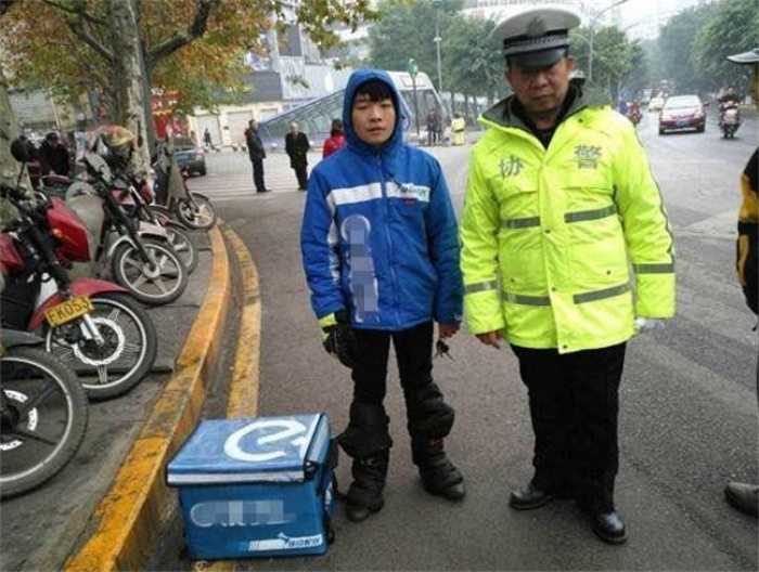 外卖小哥违反交通 跪在交警面前求放过(违反交通)