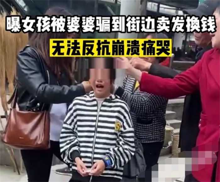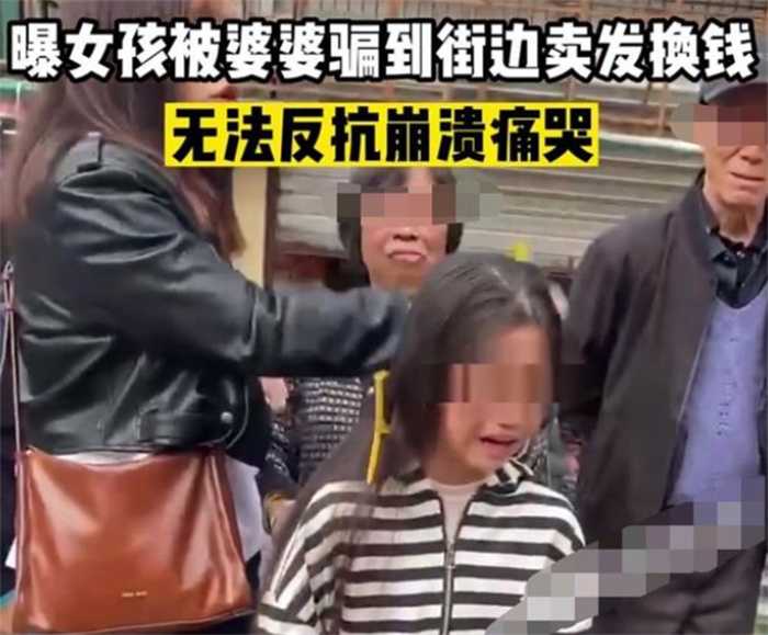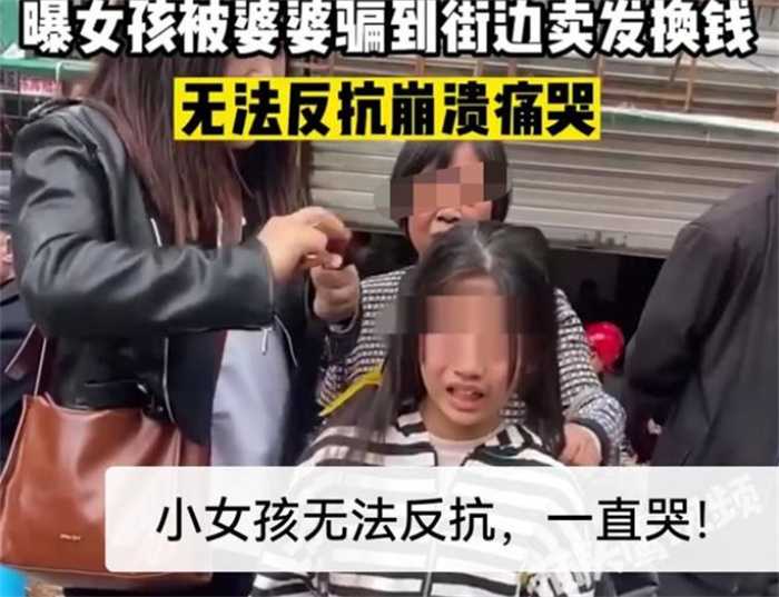 在重庆就有一个小女孩儿让她的外婆带她去理发。结果她的奶奶就把她带到了路边,把这个小女孩儿的长头发剪下来给卖掉了,而这个小女孩儿也反抗不了,就站在几点一直哭泣?据说这个小女孩儿只有十岁而已,正在读四年级,女孩儿为了能够留这个长头发已经攒了好几年,可是因为剪头发这个奇迹,就让自己的外婆把头发卖给了那些收长头发的人,虽然不知道这些长头发最后能卖多少钱,但是价值肯定不高。