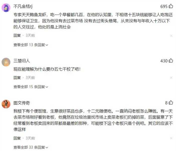 专家认为15元的自助餐可能会有着卫生问题。现在时代发展,人们的生活和之前相比有着很大的提升,我国非常多的老百姓早就已经解决了温饱问题,并且他们也可以选择一些比较高端的餐食,比如说自助餐,在之前来看就是比较高端的,当然还有很多人会比较节省一些,自助餐可能最起码也得要五六十元一人,但是在路边儿开了一些15块钱一个人的自助餐,得到了很多人的喜欢。