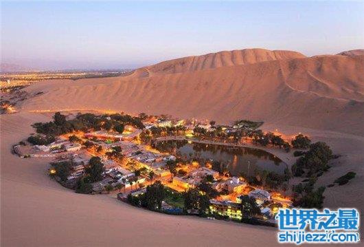 瓦卡奇纳村他说最为奇特的,他就像沙漠里的一颗珍珠一样位于南美洲阿塔卡沙漠,在这个珍珠中总共生活的大概只有90来个人,中间有一个湖泊,而围绕着湖泊的就是这个村庄,上面还有植被,湖畔中央还可以划船,不少土豪也回来这里度假,成了名副其实的度假胜地。