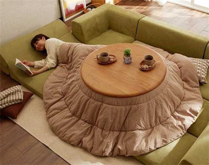 除此之外,他们的被子也像是一个炉子一样,只不过这个被子并不是晚上睡觉盖被子的,而是他们在坐的时候盖,他们通常会把自己的脚放在桌子下面,这样在盖上这个被子进行保暖,就可以让他们的下半身暖暖和和的,浑身的气血也就翻涌了起来,而现在的日本人也逐渐用上了更多的高科技,比如说我国的电热毯在日本是非常畅销。