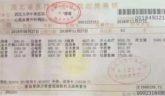 在2018年有一位姓刘的女士就在网络上把自己父亲住院的账单给发布了出来,当时他的父亲在重症病房里面一共住了八天左右,最后也没有能够救回来。而根据账单上可以显示出来从他的父亲进入医院到除了医院一共有着两个月左右,而在装备房里一共住了八天时间。就是在这段时间里一共花了刘女士100多万,这放在普通人家里绝对算是一笔巨款。可是到最后都没有能够把自己父亲的生命给救回来。她也没有想到居然有着这么高的话费。