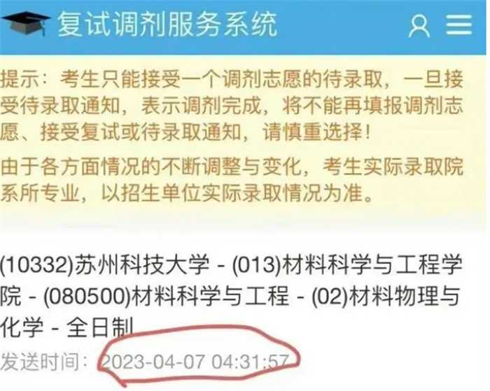 苏科大凌晨4:00发布的考研待录取通知居然要求在半个小时之内回复。在清明节前后,大家对于加班这件事情已经深恶痛绝了,虽然这件事情到最后已经被辟谣,不过是真是假,大家心里应该也有数,以及可以看得出来,广大的打工人生是真的不愿意加班,尤其是所谓的24小时待命,而在日前有一个学校在发布了录取通知之后却要求半个小时之内回应。