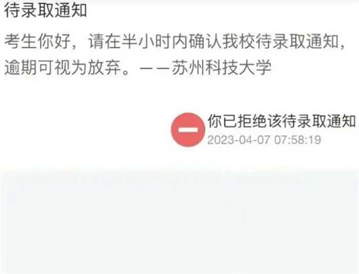 在4月八日,苏科大凌晨4:31发布了待录取通知书,不过他们却要求在半个小时之内确认,要是逾期的话就会被视为放弃,让不少的网友都在质疑,因为按照人类的生活习惯,凌晨的4点多到5:00正是睡得最香的时候。而且大多数人在睡觉的时候往往都会关掉静音,半个小时回应,实在是强人所难。