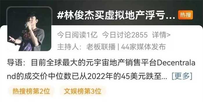 近日元宇宙的房产市场突然遭遇了大型崩盘,也造成了极为惨痛的局面,作为知名歌手的林俊杰前期也投入了元宇宙房产,目前也遭到了较大的损失,浮亏最高可以达到91%。
