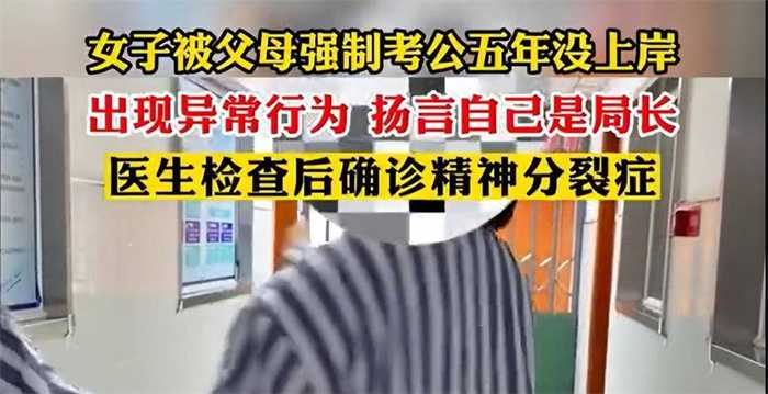 四川一女子在大学毕业后五次考公失败导致精神分裂,据详细了解,该女子受到父母的强制要求,上岸不得后情绪崩溃。父母的爱成为压塌子女的大山,以爱之名捆绑是否正确?
