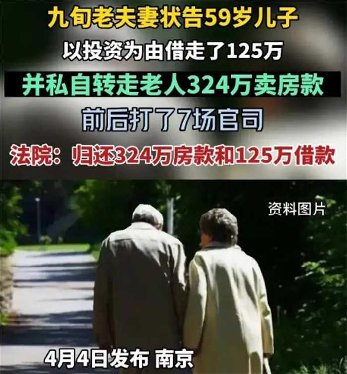 根据两位老人所说,他们在年轻的时候攒了不少钱。退休之后也有不少的退休金,而他的儿子就一直没有工作,在卖掉他们的房子之前,还有着125万元的借款没有还,在之前因为借钱的是自己的儿子,所以就没有打算要,不过儿子则是贪得无厌骗他们把房子卖掉,还没有给他们房款之后就进入了老人,为此打了七次官司,最后也是经过法院的判决,让这个儿子退还给老人买房款324万元,除此之外还有之前借款的125万。