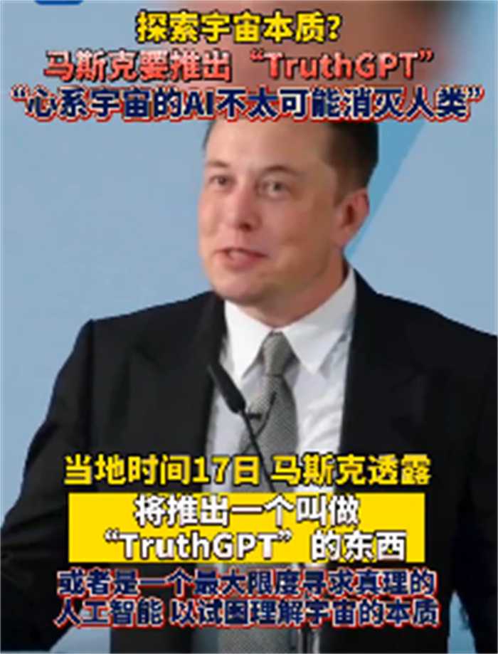 4月18日马斯克在接受采访时表示自己将要启动一个项目名称为“TruthGPT”的东西,据了解这个项目将有助于人类了解宇宙的本质,对于这种有些玄学的说法,现在很多人表示仍然处于一头雾水当中。