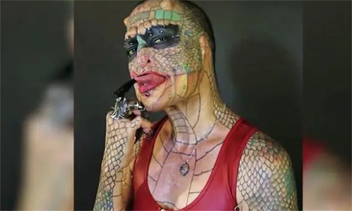 其次,龙夫人伊娃美杜莎通过变性手术让自己成为了女人,并且为了完成变身大业,他开始疯狂整容,包括切除了双耳、鼻翼,将“龙角”植入进额头,还做了分舌手术。他将身体和面部当成了画布,在上面纹满了龙的鳞片和花纹,眼白也完成了绿色,还剩下两颗尖牙。虽然他的外表看起来非常吓人,但他很喜欢自己的样子,并且至今还在变身成人龙的道路上奔波着!