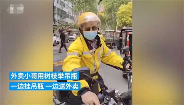外卖员身绑树枝挂吊瓶送外卖 致敬努力的人