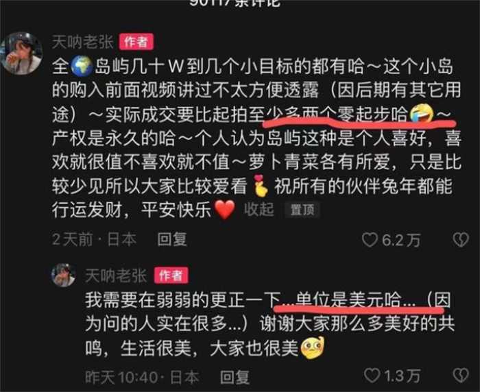 也有一些网友质疑,像这样购买土地的行为是否靠谱,不过很快就有网友给出解答说买下来这座岛屿并不是它的所有权,而是它的使用权,也就是说可以在上面建立度假村,也可以种植树木或者种地,但是不可以把它据为己有,或许等到某一个时间段,这个小岛的使用权也会被日本收回。