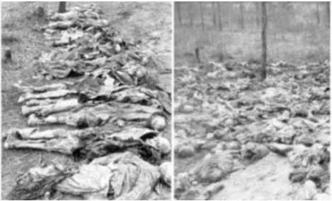 另一批则交给了内务人民委员会的行刑队,遭到了另一种方式的屠杀,波兰官兵登上他们认为驶向“自由”的航船。直到这些船开到河水中央时,苏联炮兵发出呼啸的炮弹......最后一批波兰战俘被屠杀之后,贝利亚向斯大林报告,“波兰问题”解决了。