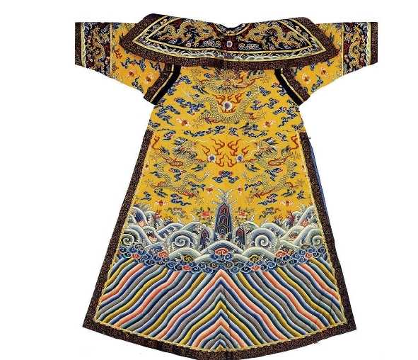 皇帝龙袍:龙袍上的各种龙章图案,历代有所变化,但龙数一般为九条:前后身各三条,左右肩各一条,襟里藏一条,正背五条,吻合帝位“九五之尊”。清朝龙袍还绣“水脚”(水浪山石图案),象征着江山一统。清朝一件龙袍的制作成本是1000两白银,按照现在的价格好像1000两白银相当于现在的(18~25万元人民币)吧?龙袍的十二章纹包括:日,月、星辰、山、龙、华虫、宗彝、藻、火、粉米、黼、黻。十二章纹历经数千年,每一个章纹都有取义,日、月、星辰代表三光照耀,象征着帝王皇恩浩荡,普照四方;山,代表着稳重性格,象征帝王能治理四方水土…龙,是一种神兽,变化多端,象征帝王善于审时度势地处理国家大事和对人民的教诲;华虫,通常为一只雉鸡,象征王者要“文采昭著”;宗彝,是古代祭祀的一种器物,通常是一对,绣虎纹和譐纹,象征帝王忠孝的美德;藻,象征皇帝的品行冰情玉洁…宗彝,是古代祭祀的一种器物,通常是一对,绣虎纹和譐纹,象征帝王忠孝的美德;藻,象征皇帝的品行冰情玉洁;火,象征帝王处理政务光明磊落,火炎向上有率土群黎向归上命之意;粉米,就是白米,象征着皇帝给养着人民,安邦治国,重视农桑;黼,为斧头形状,象征着皇帝做事干练果敢;黻,为两个己字相背。黼,为斧头形状,象征着皇帝做事干练果敢;黻,为两个己字相背,代表着帝王能明辩是非,知错就改的美德。