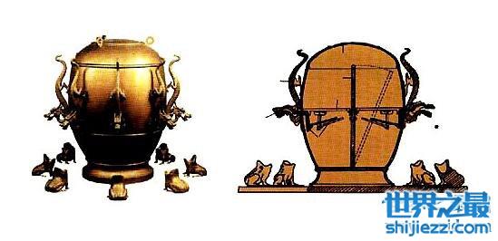 那么究竟张衡发明了什么,使得如今提起张衡,依旧是个十分震撼的名字。公元132年,张衡在太史令任上发明了最早的地动仪,称为候风地动仪。任何一方如有地震发生,该方向龙口所含铜珠即落人蟾蜍口中,由此便可测出发生地震的方向。经过试验,与所设制,符合如神,自从有书籍记载以来,是没有过的。