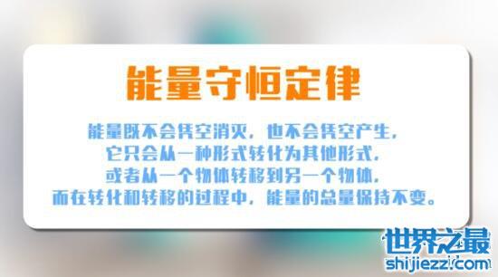 E=mc²,物质不灭定律,说的是物质的质量不灭;能量守恒定律,说的是物质的能量守恒。爱因斯坦认为,物质的质量是惯性的量度,能量是运动的量度;能量与质量并不是彼此孤立的,而是互相联系的,不可分割的。物体质量的改变,会使能量发生相应的改变;而物体能量的改变,也会使质量发生相应的改变。能量守恒否定了永动机的存在,为后来的许多发明提供了理论基础。
