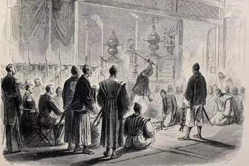 切腹可谓日本武士标志性事物,切腹的用意包含“谢罪、赐死、死谏、死殉、雪耻”等许多种,今天特意给外国人看的切腹,表面上是一种“赔罪、谢罪、严惩”的用意,其实,里面深藏着日本人企图用血淋淋的“自戕自虐”方式向法国人示威恐吓的意图!