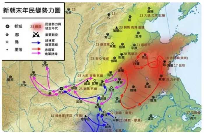 于是,刘秀开始攻略河北,他以邳彤为后大将军,任光为左大将军,信都都尉李忠为右大将军,信都县令万修为偏将军,全都封以列侯(此四人后来全都名列云台二十八讲),命他们招兵买马,募发奔命,并编写了大量声讨王郎檄文,称:“大司马刘公将城头子路、力子都兵百万众从东方来,击诸反虏。”你王郎不是骗人说赤眉的百万流民军都支持你么?我们也这么说,而且更进一步,说他们已经打来了,吓都吓死你们,这叫做以其人之道还治其人之身。