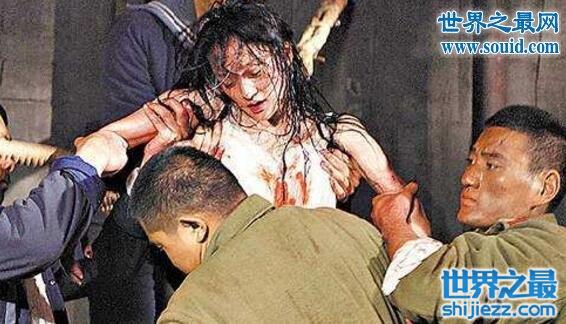 在《风声》中,当“老鬼”周迅受刑时,有不少女性观众蒙上了眼睛。这就是触目惊心的绳刑。她被迫张开双腿骑在一根被刮毛的粗麻绳上,两个男人抓着她的身体,将她一路从麻绳上拉过……最后,周迅蜷缩成一团倒在地上,裙子被染红了一片,欲哭无声。