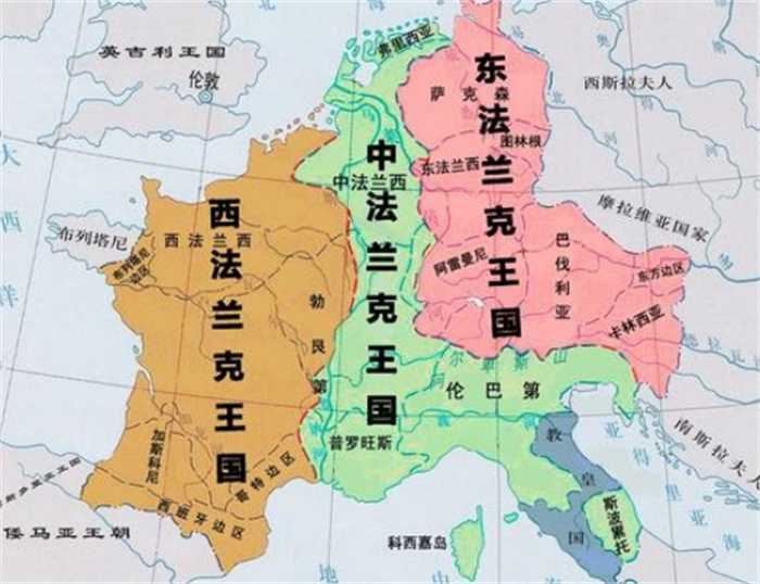 法兰克王国其实就是法国的前身。法兰克王国后来被分成了三个国家,分别是现在的德国,意大利和法国。