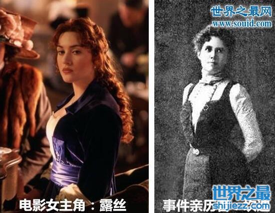 影片中的露丝却有其人,但在泰坦尼克号真实故事中,露丝不是一个不到20岁的美少女,而是一个当时已经53岁的资深美女,她不仅离异,而且还有两个孩子。但当时她却有着6个爱慕者,在巨轮撞上冰山后,休伍伦第一个赶到了她身边,后来两人都幸运的生还了,她老泪纵横地向记者讲述了那个曾经发生在自己身上的凄美的爱情故事。可惜虽然两人都还在,结局却并不如人意。