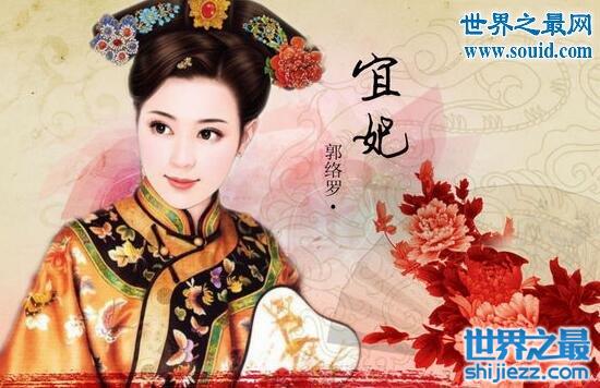 郭络罗氏,满洲镶黄旗人,佐领三官保之女。有一妹为贵人,同为康熙帝妃嫔。康熙十六年八月册为宜嫔,圣祖甚爱之。十八年生皇五子恒亲王胤祺,二十年十二月晋封宜妃。二十二年生皇九子胤禟,二十四年生皇十一子胤禌。康熙帝死时,宜妃正生病,帝诏以四人抬软榻,亲至丧所看视。可见作为康熙四妃之一,是有理由的。