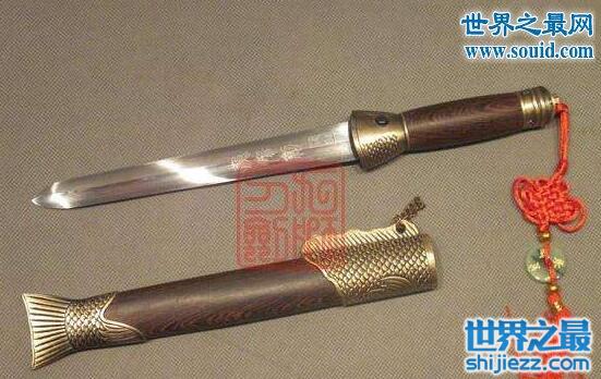 其实鱼肠剑的名字由来有两个说法,其中一个是大众所知道的版本,就是由于它小巧得能够藏身于鱼腹之中,一种可能是鱼肠剑的剑身细长柔韧,能够沿鱼口插入,在鱼的胃肠中曲折弯转,而抽出时则恢复原形,钢韧无比,熠熠生光;另一种可能是鱼肠剑为诸多名剑中十分小巧的一枚,如短刃,如匕首。