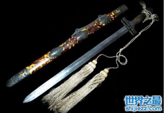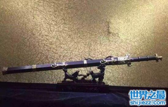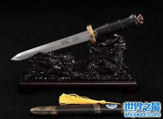 此剑为欧冶子及干将为楚王所铸,剑“釽从文起,至脊而止,如珠不可衽,文若流水不绝。”这把剑弯转起来,围在腰间,简直似腰带一般,若乎一松,剑身即弹开,笔挺笔直。若向上空抛一方手帕,从宝剑锋口徐徐落下,手帕即分为二。斩铜剁铁,就似削泥去土。