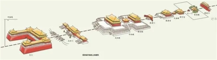 而且紫禁城中的钟楼,鼓楼,景山等建筑,基本都是沿着这条直线对称修建的。这条直线,被称为是紫禁城的中轴线,除建筑之外,皇帝的宝座也是坐落在这条中轴线上的。
