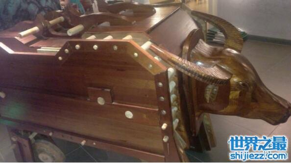 制造木牛之法:方腹曲头,一脚四足;头入领中,舌着于腹。……每牛载十人所食一月之粮,人不大劳,牛不饮食。