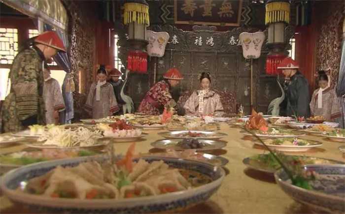 早餐时间,慈禧要吃超过20道菜的早膳,其中还不包括点心和主食。为了防止有人在食物中下毒,慈禧在用早膳前会让专门的试吃太监品尝,确保菜中无毒。慈禧吃饭时会示意宫女为她布菜,她喜欢的菜就会夹到她嘴里。虽然慈禧每次用餐都会剩下很多食物,但她宁愿浪费也不愿赏赐给宫女太监。