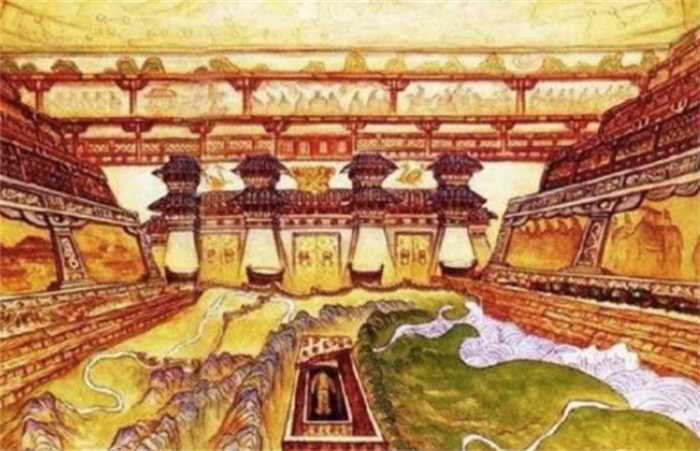 据史料记载,通往地宫的墓道一路布满由人鱼油制作的长明灯,转过弯是用各种宝石和夜明珠做成的繁星,地上是用水银灌注而成的江河湖海,巨大的墓室宛如一个地下宫殿,秦始皇的棺椁就放在宫殿的最中央,俯视着一切。