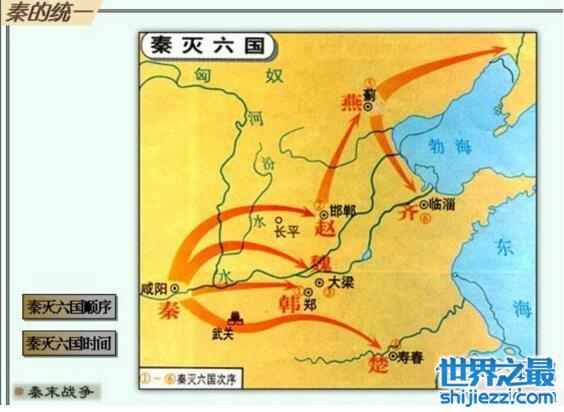 秦国灭六国顺序:韩国、赵国、魏国、楚国、燕国、齐国