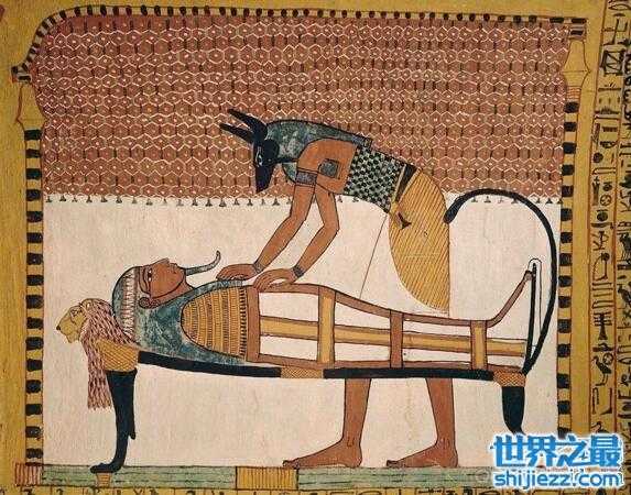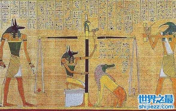 在希腊人画的壁画上上,阿努比斯分身成两个,一个负责领路,一个负责称心脏,后来奥西里斯神话出现,这个神话应该是当时古埃及人的精神文化的一个重要组成部分,因为内容非常详细。奥西里斯神话很好很流行,里面众神出尽风头,但是却没有在埃及高人气的阿努比斯出场,后来阿努比斯被强行塞进了奥西里斯神话,主要还是因为阿努比斯的身份太过尴尬。