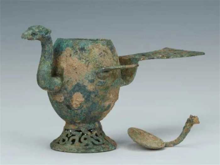 西周“鲁侯爵”,前有流,后有尾,杯身有鋬,杯下为三足。其造型基本为传统意义上青铜爵的造型。这件青铜爵上有10字铭文,其中4字为“鲁侯作爵”,这是迄今为止发现的唯一带有自名的青铜三足爵。很长时间我们也觉得青铜爵的造型就是这样,除此之外再无其他。