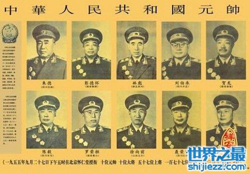 1955年9月27日,中华人民共和国全国人大常委会第二十二次会议通过了授予中华人民共和国元帅军衔的决议。1955年9月27日下午5时,在北京中南海怀仁堂隆重举行授元帅军衔及授予勋章典礼,毛泽东主席颁发命令状,授予朱德、彭德怀、林彪、刘伯承、贺龙、陈毅、罗荣桓、徐向前、聂荣臻、叶剑英10人中华人民共和国元帅军衔,并授予一级八一勋章、一级独立自由勋章、一级解放勋章,中国人民解放军历史上著名的“十大元帅”由此确立。