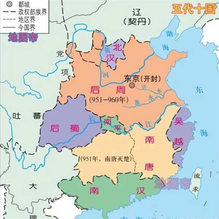 五代及北汉在北方,十国中的九国在南方