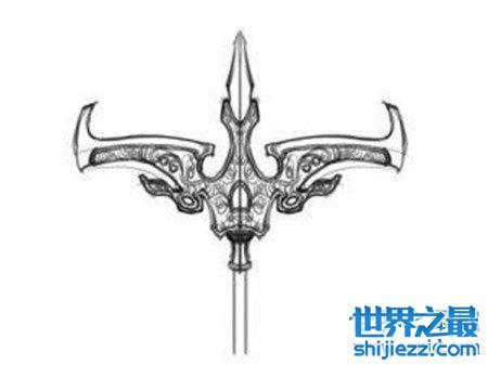 这种兵器的样式应该叫做"凤翅镋"或"凤翅镏金镋",因为它的两边外展象是凤凰翅膀而得名。一般这种兵器是镏金的。所以有人叫它"凤翅镏金镋"。是宇文成都的兵器。