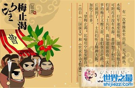 "望梅止渴"是大家熟悉的一个成语,望梅止渴的主人公是谁,大多数人以为只有曹操,但是和刘备也有点关系,古书记载一次,曹操和刘备同来到后园的小亭对饮,曹操说:"适见枝头梅子青青,忽感去年征张绣时,道上缺水,将士皆渴,吾心生一计,以鞭虚指曰:'前有梅林',军士闻之口皆生唾,由是不渴。今见此梅,不可不赏。"于是二人对坐,开怀畅饮,论起天下英雄来。