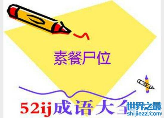 谓官员居位、食禄而不尽职。尸位,谓空占位置;素餐,谓不劳而食。夏启子太康继位后,安逸享受,不恤民事,长期在外游猎,后被有穷氏首领后羿所灭。后人因称其不理事为“尸位”。素餐,是指西周时期劳动人民通过民歌斥责不劳而食的贵族。歌词大意是:不拿锄来不拿镰,为什么你的粮食千千万?不拿弓来不拿箭,为什么你家猎物满庭院?人家生来身分高,不干活来白吃饭。