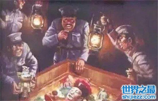 这些士兵废了九牛二虎之力才把乾隆墓挖开,最后却只是一堆废纸,相当的生气,不仅把名画撕了,而且还把乾隆皇帝的尸体给凌辱了,他们将乾隆的尸骨抛在了稀泥之中,而乾隆的两个贵妃也没有幸免,真是畜生!
