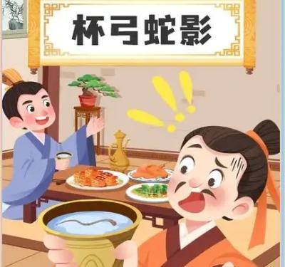 有一次乐广请客吃饭,墙上挂着一面弓。公的影子倒映在了酒杯当中,有一位客人以为杯中有蛇。回家之后就疑神疑鬼,不久之后就生病了。乐广知道了此事之后,就再次邀请这位客人来家里吃饭,并把弓的影子告诉了这位客人,客人知道之后恍然大悟,病也很快就好了。
