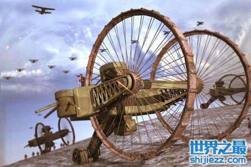 从当时各个国家坦克的设计特点上来说的话,恐怕最不寻常的坦克原型就要属俄国的沙皇坦克了。因为这太巨大的战争机器身高居然有30英尺,重大60吨,几十年后二战德国的虎式坦克也就只有56吨的重量。沙皇坦克总体看上去就像是个三轮车一样,它包括两个巨大的轮子,巨轮的用处就是为了能够翻越障碍。这个庞然大物是当时俄国军事工程师列贝登科的创作,当时他与卓科夫斯基、鲍里斯·希特金以及亚历山大·米特林一起商议设计出了最初的样子。