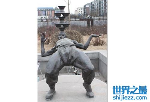 现在北京天桥广场上就有“天桥八怪”的铜雕塑,是为了提升天桥的名气还是为了纪念那些有名的旧艺人?本人不清楚,为了纪念,你去那里看看,每个艺人的雕塑前都有一块铜牌,铜牌上面有每个人的介绍,满是灰尘 ,根本就看不清楚。不像现在的艺人称“星”——明星,要是在过去,像“娘娘腔”小沈阳也绝对能被称为一怪啦。现在的“德云社”剧场就在天桥广场对面的一个小胡同里。