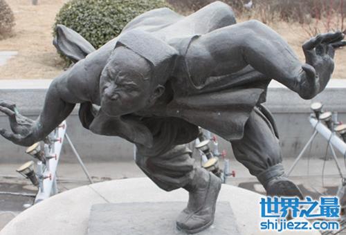 “胸前开石”就是用两条板凳相距三四尺远,后胸枕在一条板凳上,两脚放置在另一条板凳上,将一石磨盘于胸上,一人用铁锤猛击磨盘,直至磨盘被击碎,人还躺在那里。沈三长的体魄健壮,武艺高强,沈三的摔跤也都被人称道。