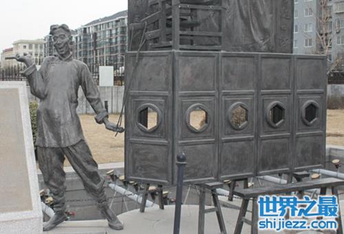 此人是拉洋片的,因为他装了一口金牙,所以就称他为“大金牙”。图片显示的就是拉洋片的道具。
