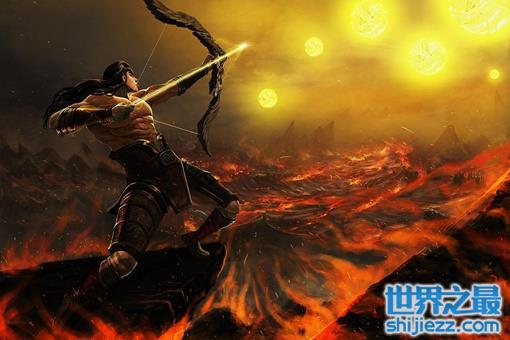 羿,本称司羿,也称为大羿(被后人误作"后羿"),是上古时代的传说人物。他善于射箭,曾助尧帝射九日。传说十日齐出,祸害苍生。天帝(帝俊)就派擅长射箭的羿下凡解除灾祸。羿射九日,只留一日,给大地带来复苏的生机。