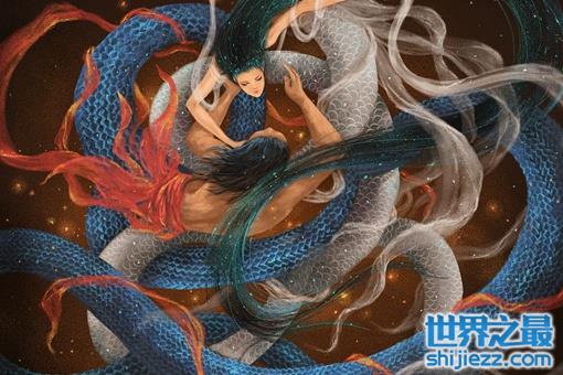 据说是,洪荒中最会使电的,人面鸟身,耳挂青蛇,手拿红蛇,是为翕兹。