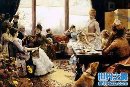 一位名叫安娜的公爵夫人灵机一动,发明了喝下午茶这个节目,此举立刻受到上流社会的欢迎与效仿。贵妇淑女们又多了一个展示华美衣饰的机会和场所。